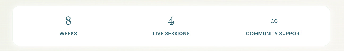 If you miss a session, you have the recording. You can miss up to two and still receive your certificate. The live process is where the deepest work happens, so full attendance is encouraged. But life is real, and the program accommodates it.